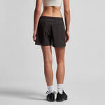 Elastic waist with external drawcord, 2 x side pockets, 1 x back pocket with zip, shorter length, split sides for ease of movement